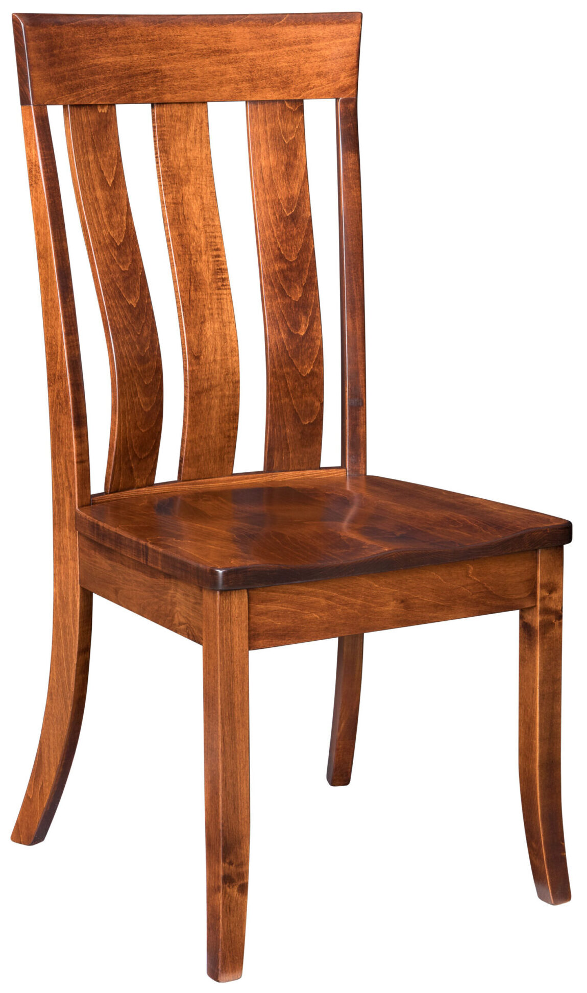 Three wide slats, tapered legs and legendary Amish cabinetry combine to make the Alexander Dining Chair the very essence of elegance and comfort. The curved slats provide great lumbar support. While the scoop seat enhances comfort. Amish cabinetmakers build the chair from solid hardwood. So, it’s heirloom-quality.