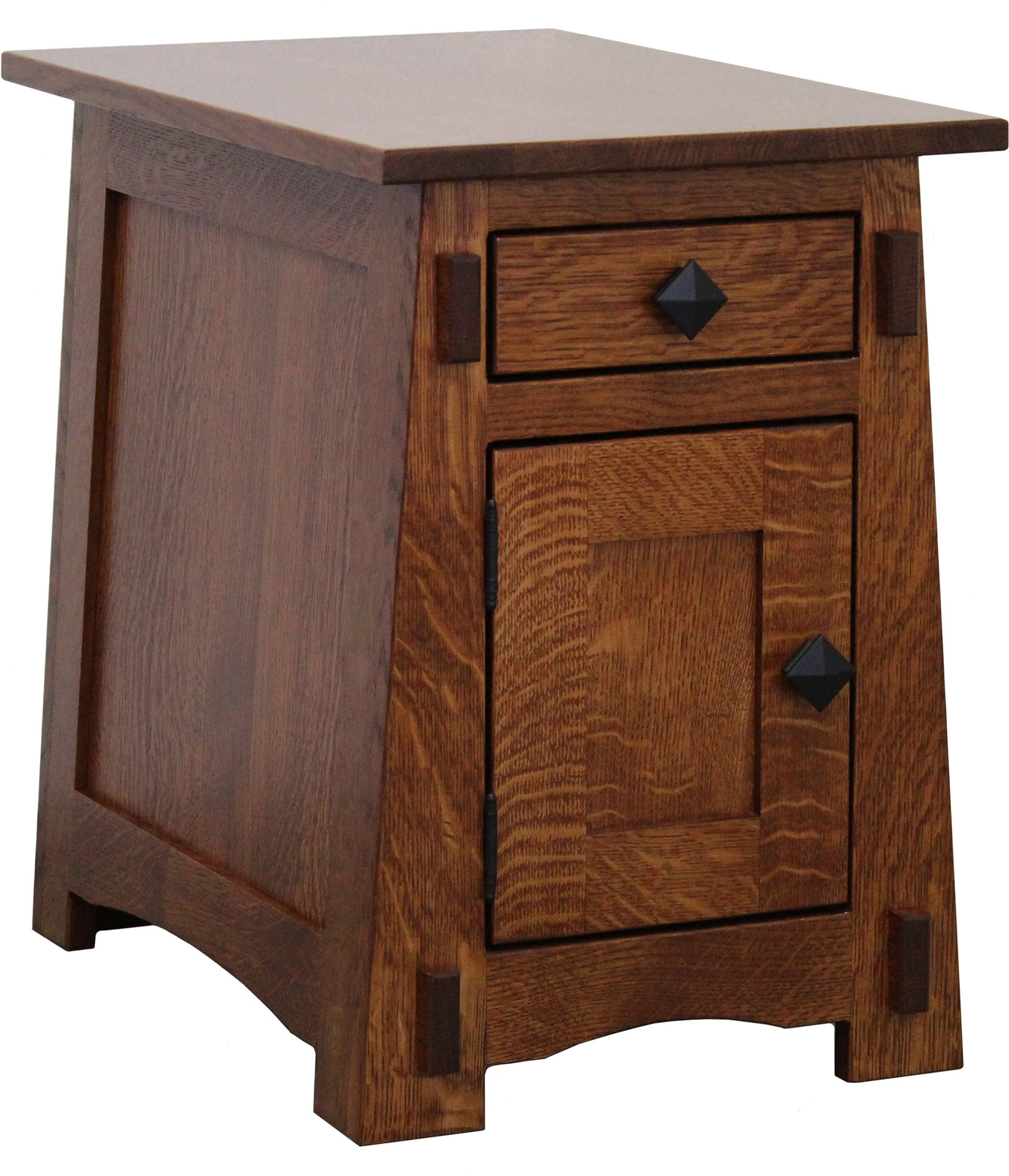 With its narrow stance, enclosed design, and Mission features, the Antique Mission Small Cabinet End Table is big on looks and user-friendly features. Check out its tapered profile, exposed tenons plus flush drawers and door. Also the convenience of a drawer and enclosed cabinet space. Amish artisans build the end table. Also, they use quarter-sawn white oak. So the end table is sturdy and heirloom-quality! Buy now by placing the end table into the Shopping Cart. We ship. Or you can pick up your furniture at our affiliated warehouse in Shipshewana, Indiana.