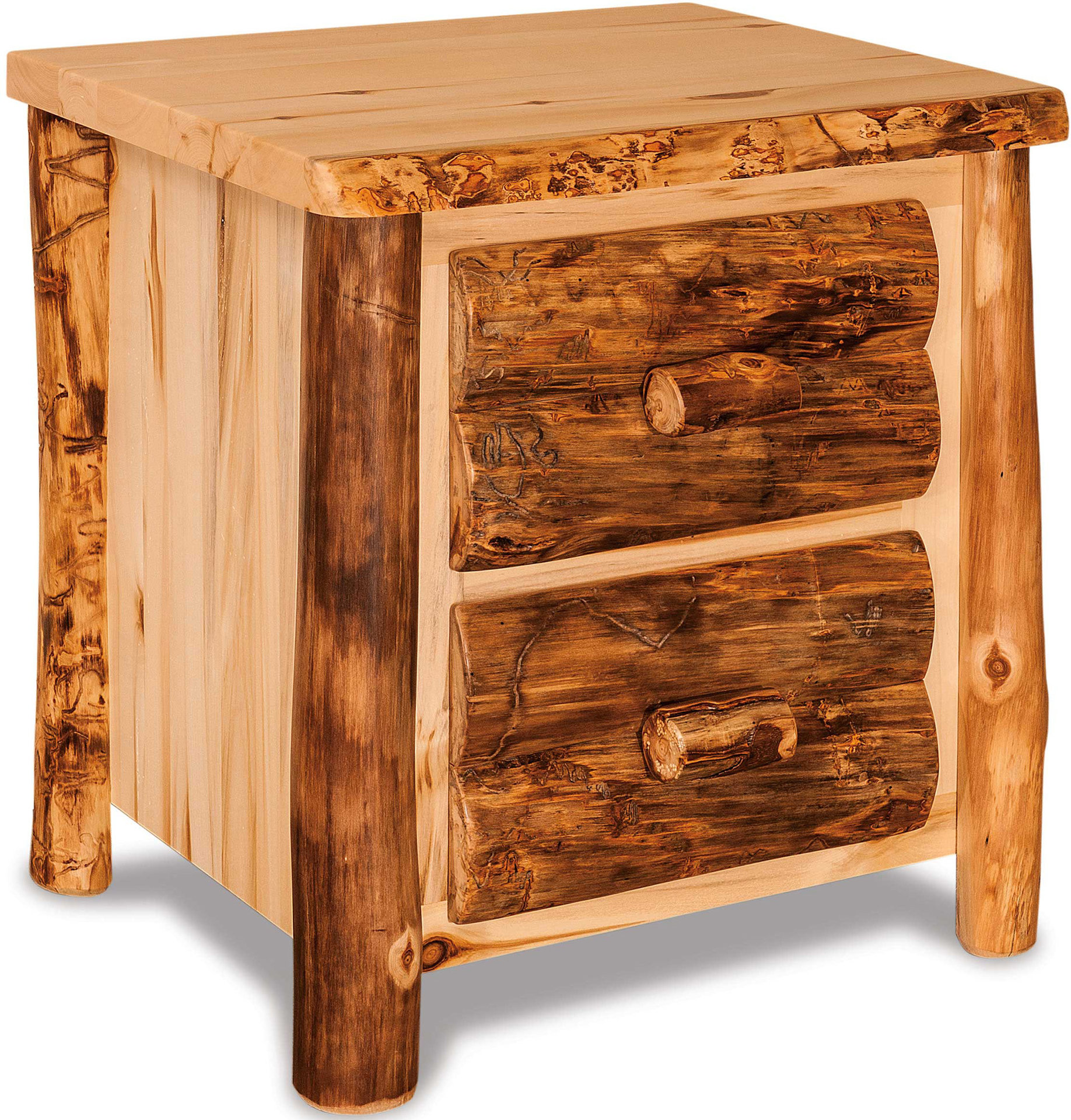 Smaller in stature but larger in visual appeal, the Aspen Small Log Nightstand represents the essence of rustic beauty. Our Amish builders left a live edge on the top. Also, they preserved the uneven surfaces of the posts, drawer fronts and hardware. So every nightstand is unique. And charming. No wonder the nightstand is heirloom-quality! In addition, the drawers open full-extension for easy access.