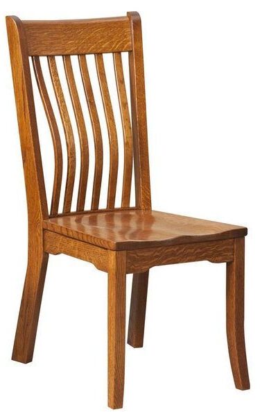 Curved slats in the backrest as well as splayed feet catch the eye on the Broadway Kitchen Chair. Imagine this lovely chair gracing your dining room! The steam-bent slats provide great lumbar support. While the scoop seat enhances comfort. Amish cabinetmakers build the chair from solid hardwood. So, the chair is great-looking, sturdy and and heirloom-quality!