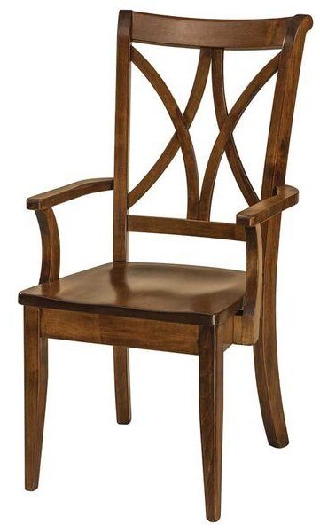 With its crisscrossed wood slat design, tapered feet, and scooped seat, the Callahan Kitchen Chair makes a great-looking and comfortable addition to your dining room. You couldn’t ask for a better-looking solid hardwood dining room chair. Amish cabinetmakers handcraft each chair. And they use rustic cherry hardwood – with a dark finish. So, the Callahan Kitchen Chair is durable and heirloom-quality! Side chairs and armchairs are available. Buy now by placing the chair in the shopping cart. We ship. You can also pick up your furniture at our affiliated warehouse in Shipshewana, Indiana.