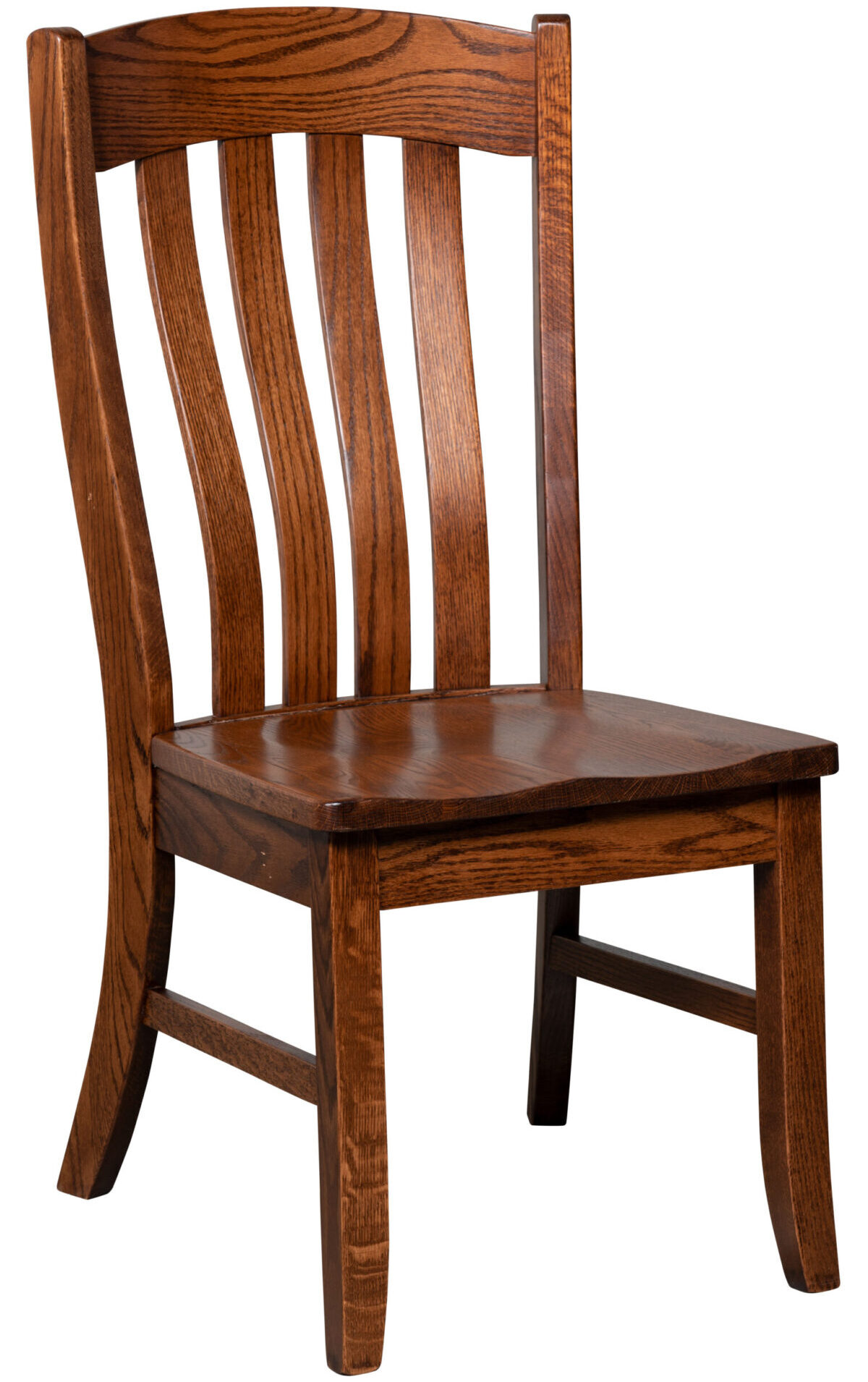 With its arched-top backrest and intricately carved slats, the Carlton Kitchen Chair will make a great impression in your upscale dining room. The steam-bent slats offer lumbar support. While the saddle scoop seat enhances comfort. Amish cabinetmakers build the chair from solid hardwood. So, it’s sturdy and heirloom-quality.