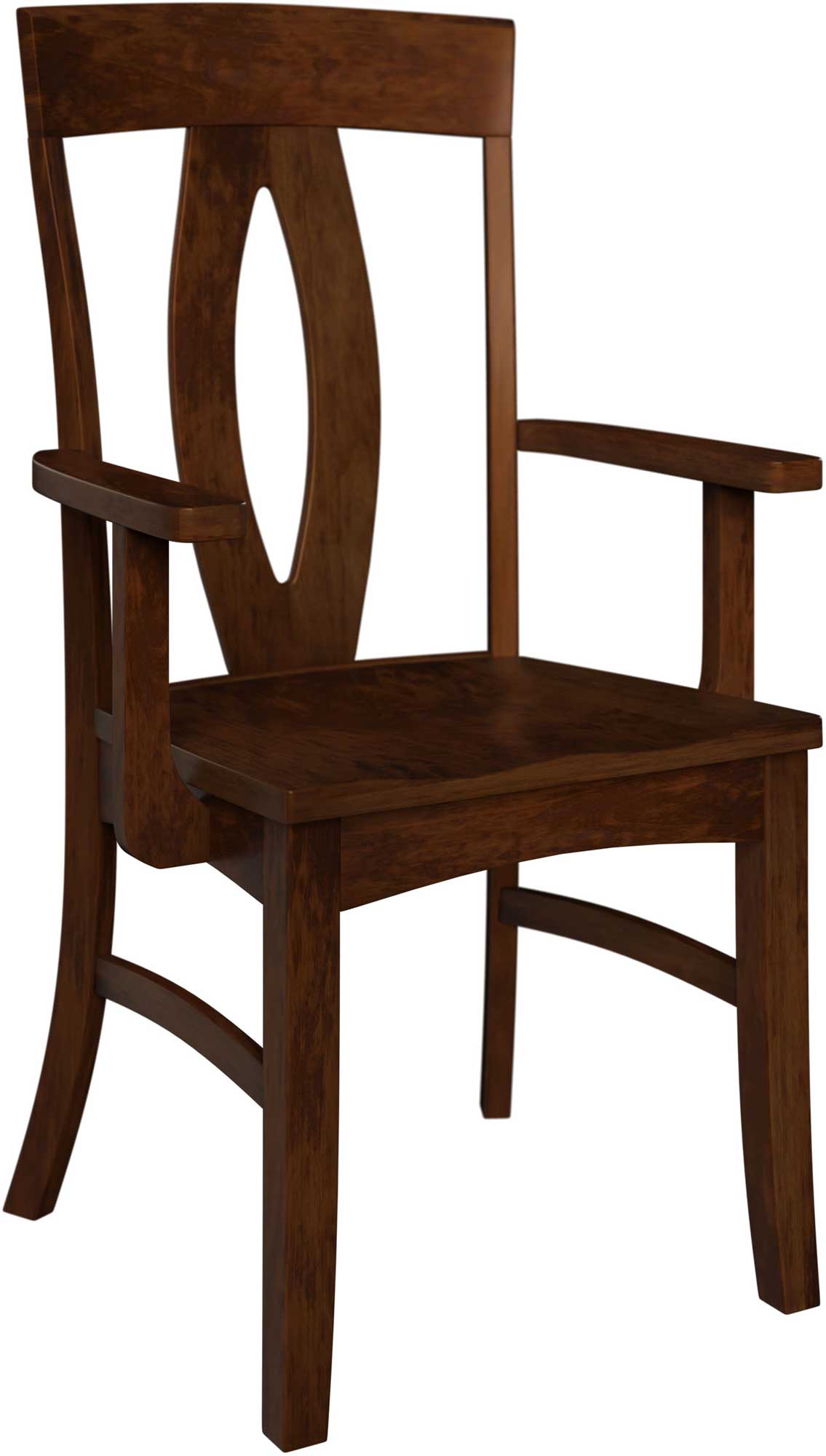 The beautiful elliptical design in the backrest combines with graceful arches in the base to give the Christina Kitchen Chair its exclusive look. This makes the chair an ideal choice for any upscale dining room. Amish artisans build the chair from solid hardwood. No wonder it’s so sturdy — and heirloom-quality!.