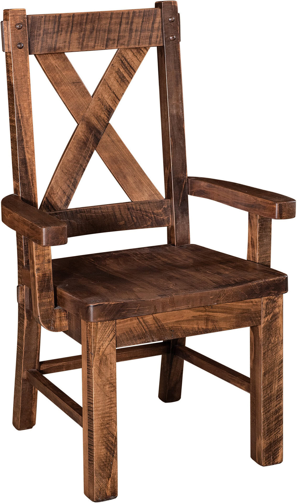 Rugged, strong, durable, and handcrafted. When you throw all those together, you get the Denver Kitchen Chair. Do not forget about the comfort this hardwood chair provides. In addition to the design, you can see that the chair seat is formed to fit you. Also, the Denver Side Chair is similar to the Houston Kitchen Chair. This chair is built from Rough Sawn Wormy Maple with an Almond finish. Complete your dining set with four side chairs and two armchairs or customize your quantities.