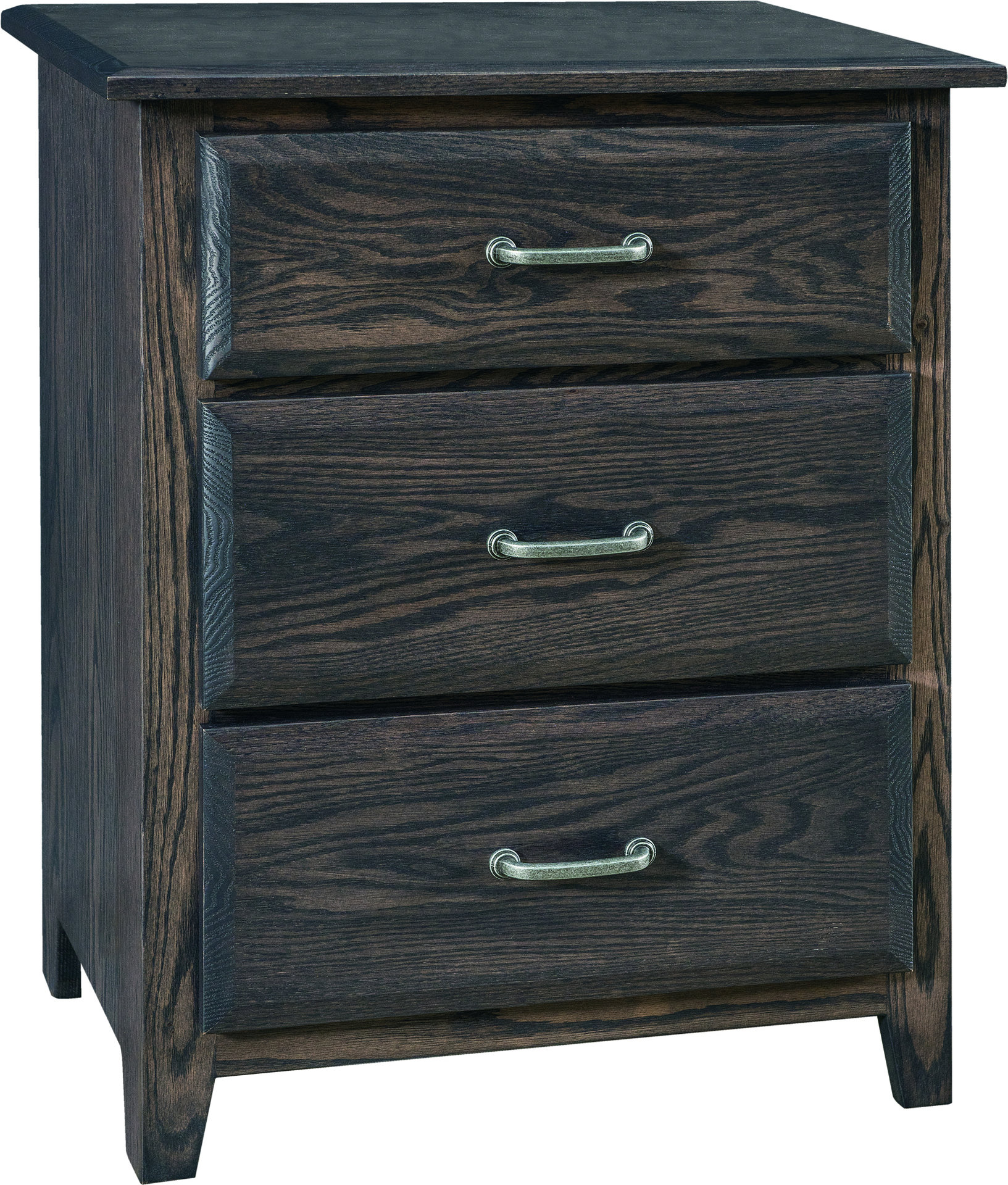 From its beveled-edged drawer fronts and top to its wide stance and clean lines, the Eckenridge Nightstand portrays a handsome profile. Making it complement your existing bedroom furniture. The drawers open full extension. So, you’ll enjoy easy access to everything inside. While the dovetail drawer joints enhance durability. Amish cabinetmakers handcraft the nightstand. And they use oak hardwood. So, the Eckenridge Nightstand is sturdy and heirloom-quality! Buy now by placing the nightstand into the Shopping Cart. We ship. You can also pick up your furniture at our affiliated warehouse in Shipshewana, Indiana.