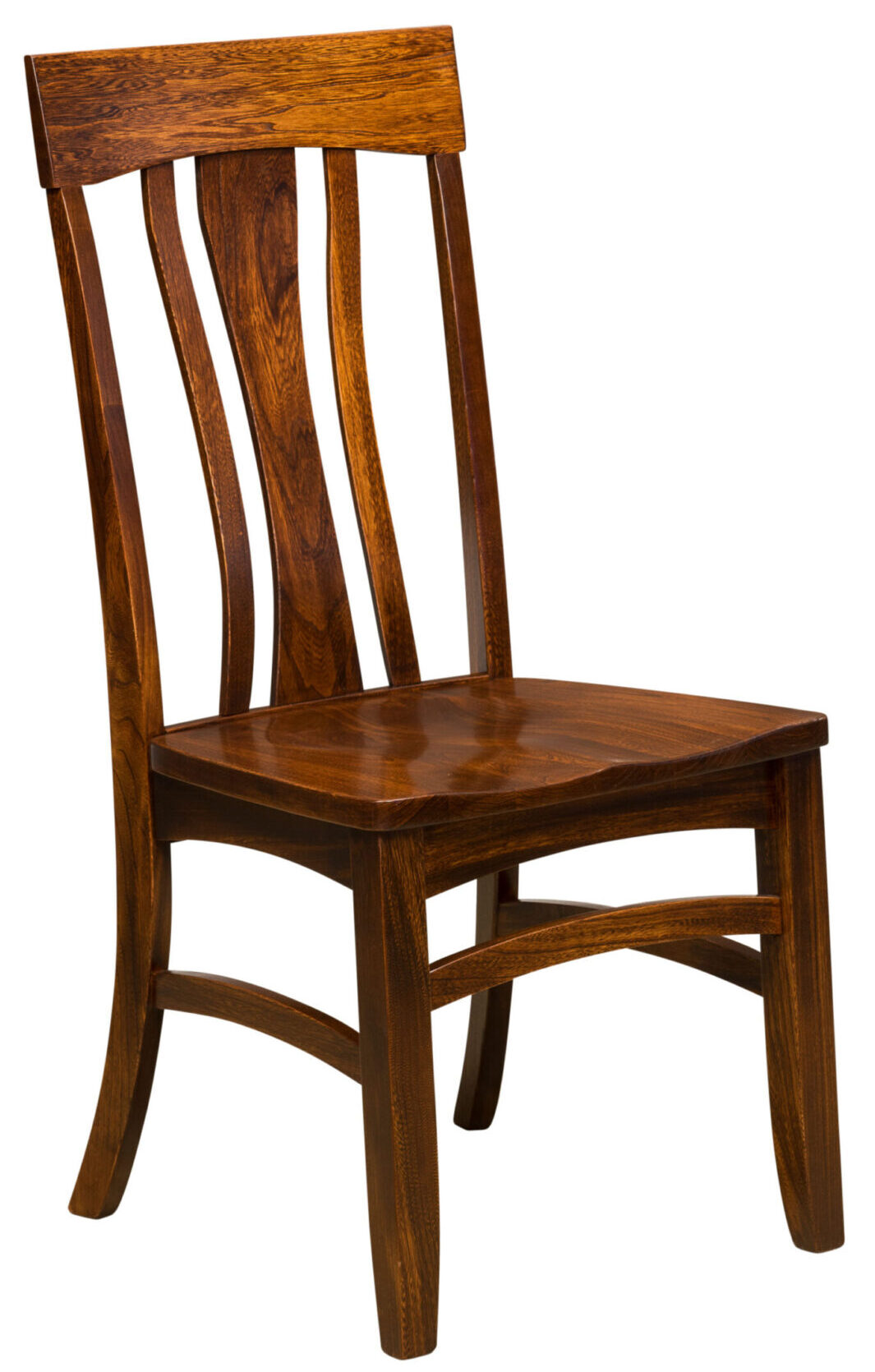 With an ornate slat design and gracious curves in the backrest, legs and stretchers, the Gatlinburg Kitchen Chair will bring hints of Americana to your dining room. The curved slats offer great back support, while the saddle scoop seat enhances comfort. Amish cabinetmakers — the best in the Midwest — build the chair from elm hardwood (shown with Michael’s Cherry Stain). So, the chair is sturdy and heirloom-quality.