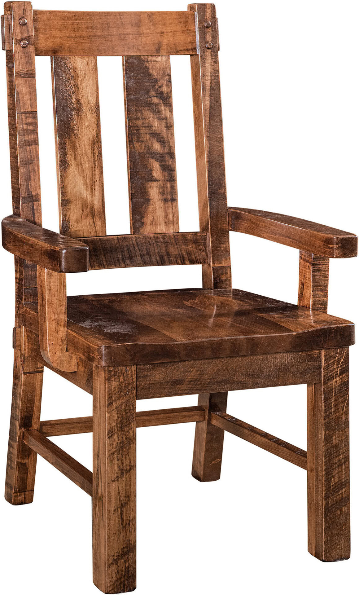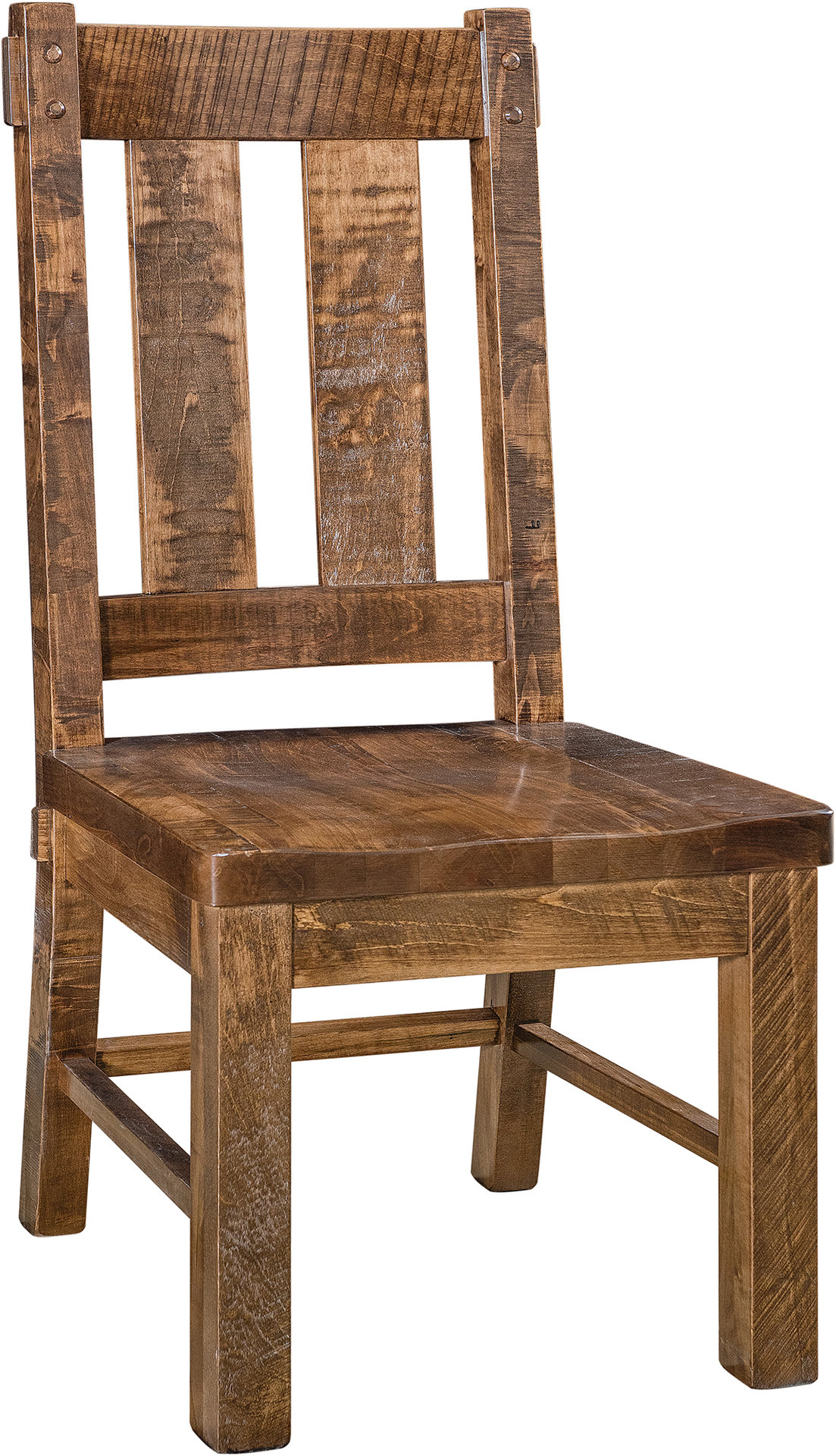 If you are looking for a durable, long-lasting chair, you have found the one with the Houston Kitchen Chair. The rugged design gives off a hardwood feel. The Houston Kitchen Chair is very similar to the Denver Side Chair, the only difference being the design of the slats. The Houston Chair’s slats are more traditional as they run together while the Denver Chair’s slats cross each other. This chair is built from Rough Sawn Wormy Maple and is shown with a Bel Air finish. We do offer armchairs with this style and they do compliment the side chairs.