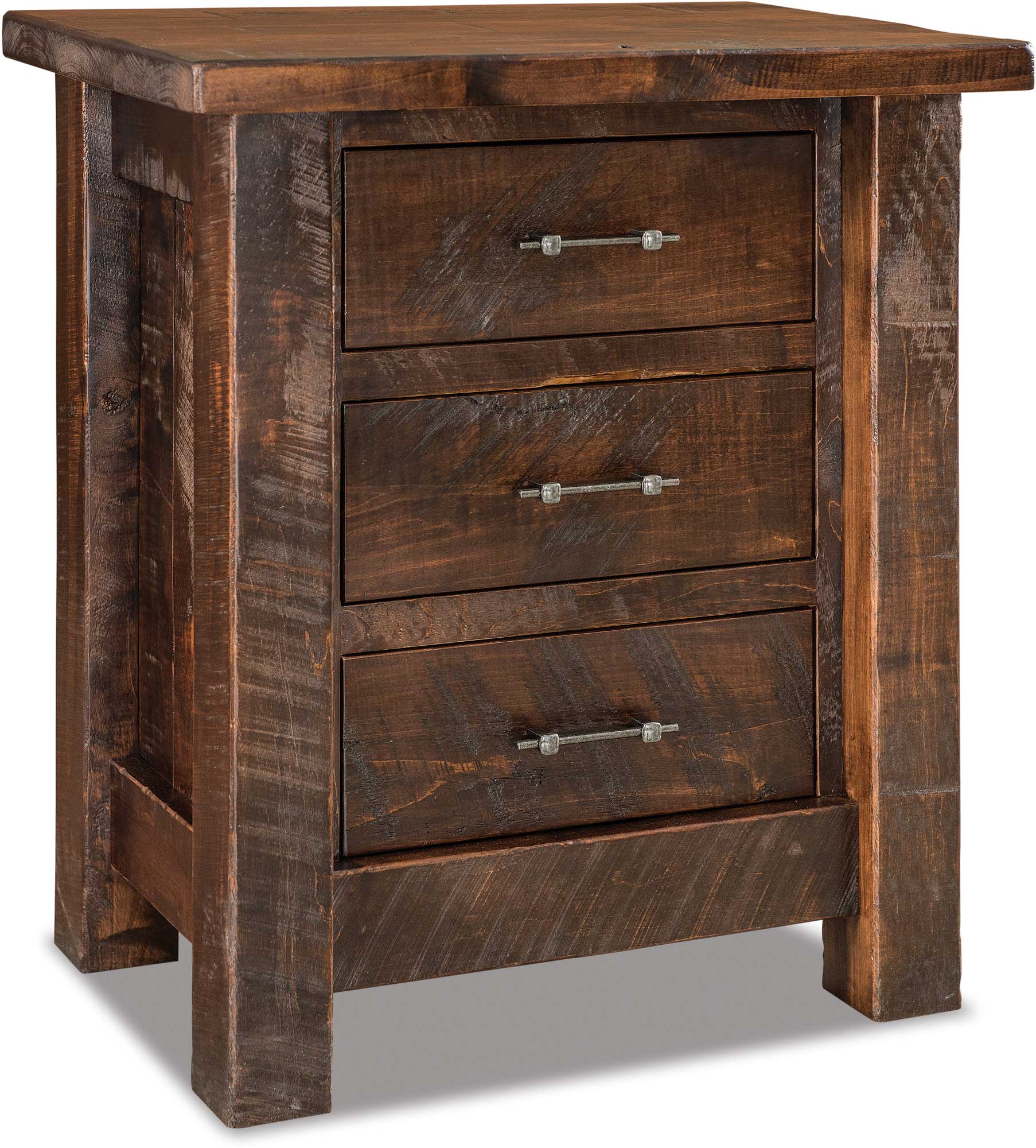 From its hefty, 1 ¾-inch solid wood top down, the Houston Wide Nightstand portrays a rustic persona. Indeed, the 3 ½-inch posts and hardware enhance its rustic side. Amish artisans handcraft the nightstand. And they use rustic rough-sawn brown maple. So the nightstand is sturdy. Plus heirloom-quality. What’s more, the drawers open full extension for easy access.