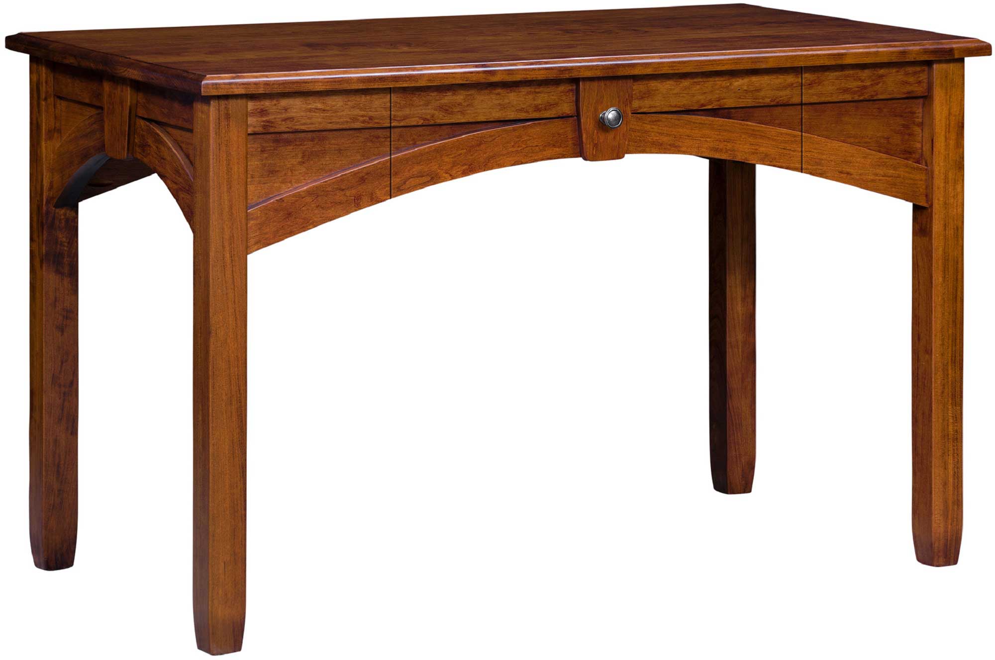Arched hardwood design gives the Kensing Writing Desk its exclusive – and upscale – look. You couldn’t ask for a more prestigious desk for your home office. We place a pencil drawer at the apex of the arch. And you open it with the Silver Antique hardware. Amish cabinetmakers – the best in the Midwest – handcrafted the desk. Also, they used brown maple wood. With Michael’s Cherry stain. No wonder the desk is so sturdy. Durable. Plus heirloom-quality!