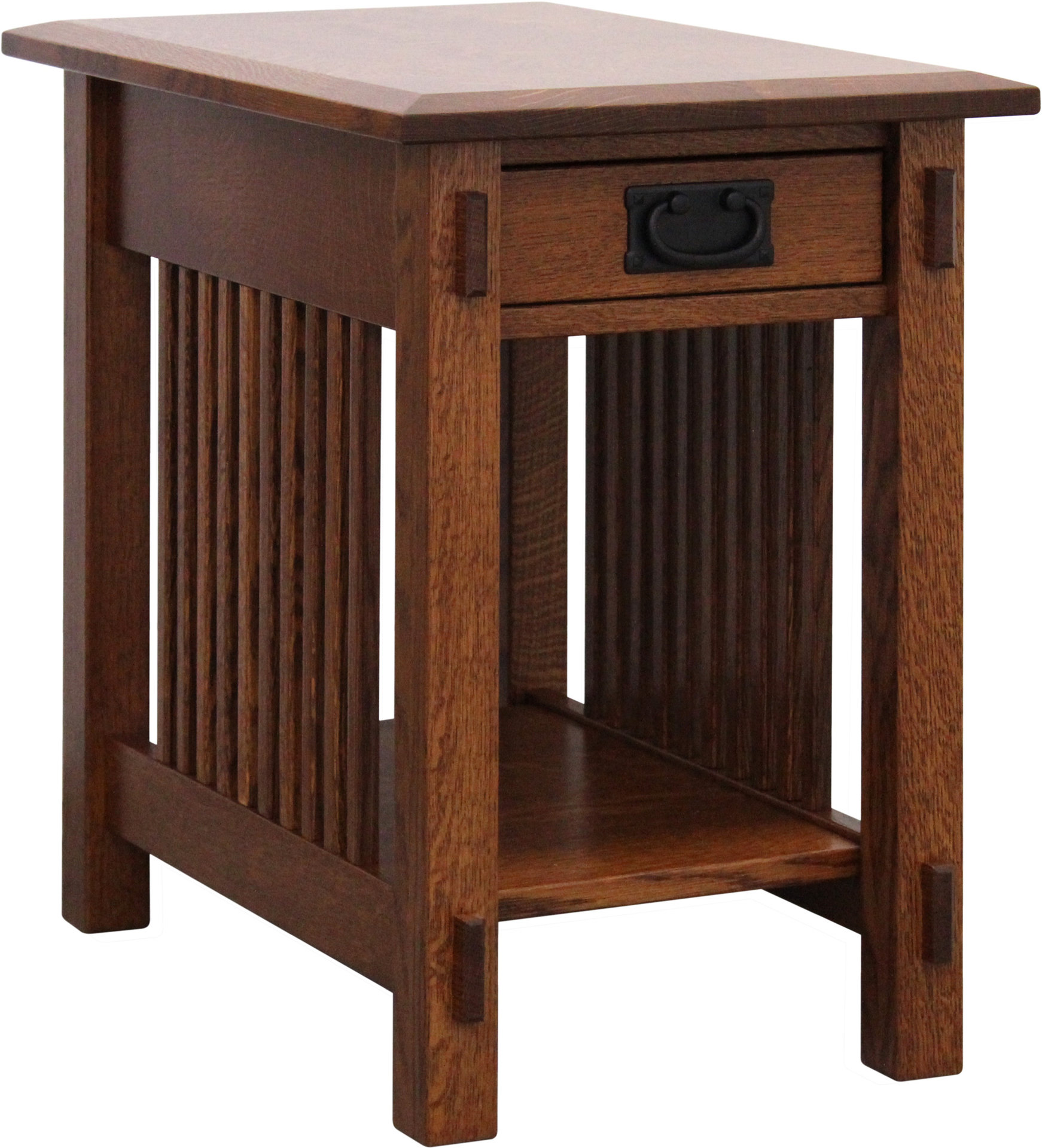 Attractive Mission style and Amish solid hardwood construction make the Lux Mission Small End Table the right match for your traditional or modern living room or den. Indeed, the eye-catching exposed tenons and back Mission pull hardware to catch the eye. As do the tight slats and open design. Amish cabinetmakers handcraft the end table from quarter-sawn white oak. And they give it a red-brown finish. So, the sofa server is eye-catching, sturdy and heirloom-quality! Buy now by placing the sofa server into the Shopping Cart. We ship. Or you can pick up your furniture at our affiliated warehouse in Shipshewana, Indiana.