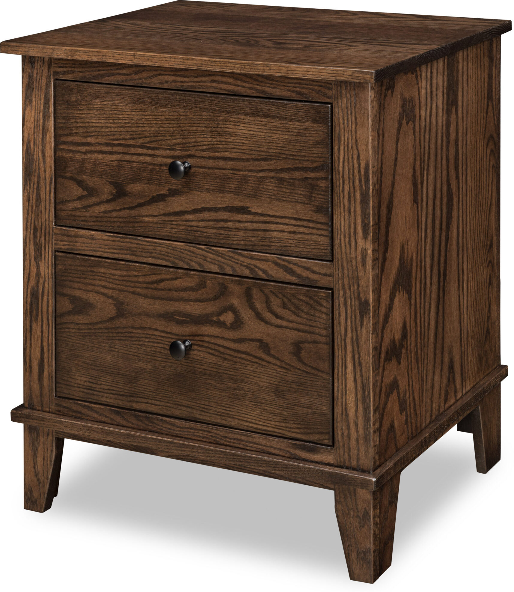 The Madison Nightstand catches the eye with its clean look, wide stance, and solid hardwood construction. Check out the flush drawer fronts with black knob hardware. Plus, the tapered legs and trim at the base. The dovetail drawers open full extension for easy access to everything inside. Amish cabinetmakers handcraft the nightstand. And they use oak hardwood. It’s finished with Charwood stain. So, the nightstand is top-quality and beautiful. Plus sturdy and heirloom-quality! What’s more, we offer the nightstand through our Quick Ship program. Which means it will arrive faster. Buy now by placing the nightstand in the Shopping Cart. We ship. You can also pick up your furniture at our affiliated warehouse in Shipshewana, Indiana.