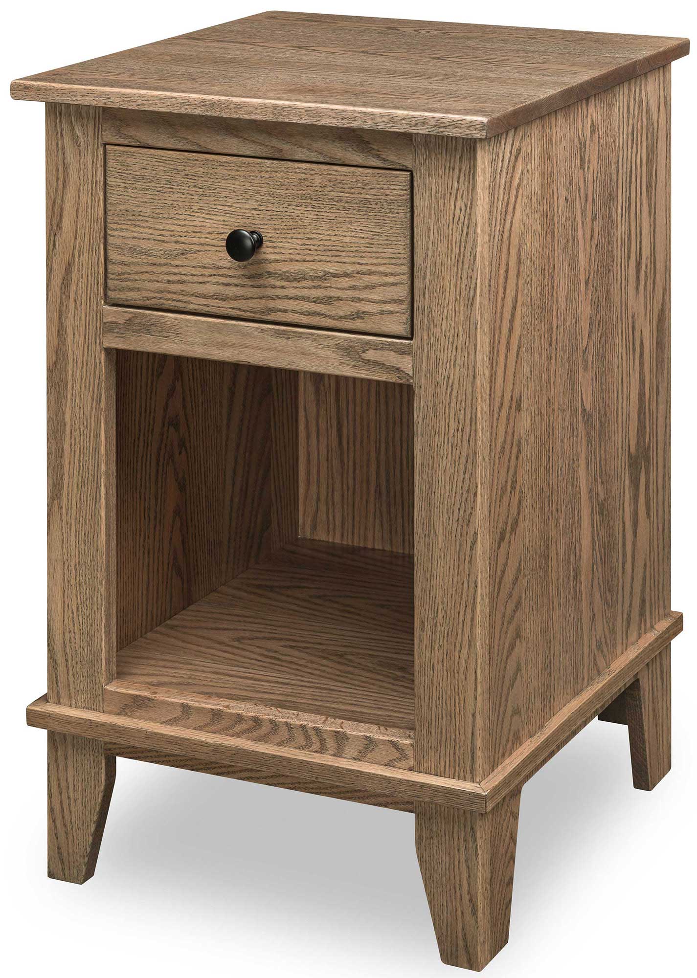 With its practical — yet eye-catching — design, great looks, and solid hardwood Amish construction, the Madison Open Nightstand will make a great companion piece to your bed. The open bay and drawer give you two storage options. While the dovetail drawer opens full extension. Giving you easy access. Amish artisans build the nightstand. And they use oak hardwood. So, the nightstand is top-quality and beautiful. Plus sturdy and heirloom-quality! What’s more, we offer the nightstand through our Quick Ship program. Which means it will arrive faster. Buy now by placing the nightstand in the Shopping Cart. We ship. You can also pick up your furniture at our affiliated warehouse in Shipshewana, Indiana.