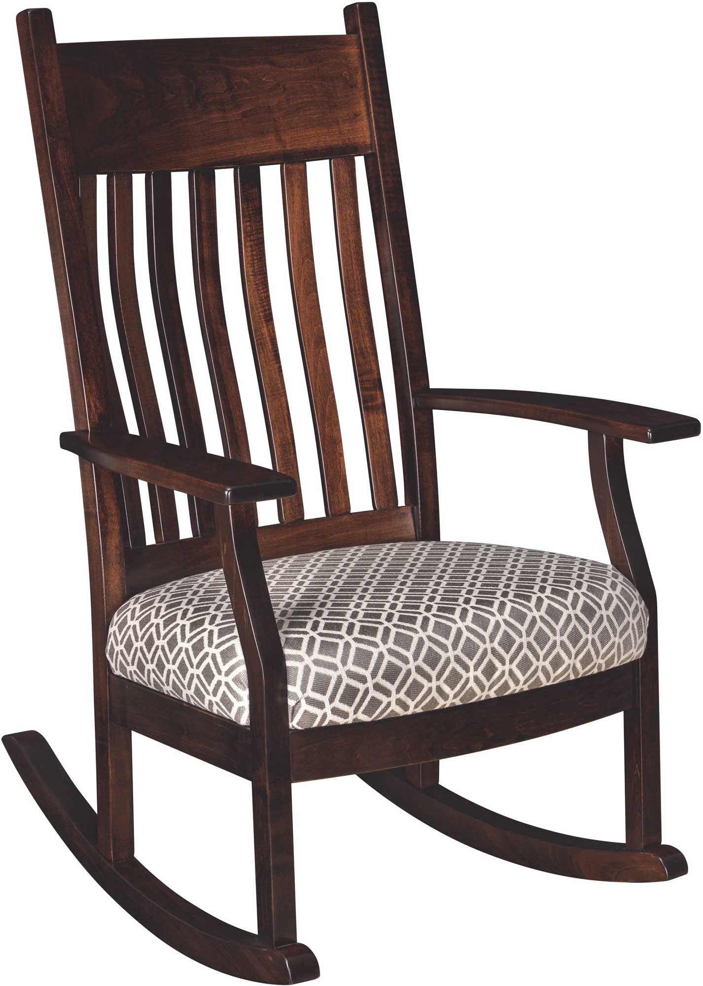 A liberally-padded upholstered seat makes the Oakland Slat Rocker extremely comfortable. As do the armrests and curved backrest slats. Amish artisans build the rocker. And they use brown maple hardwood. Plus premium fabric, foam and other components. No wonder the rocker is so comfortable. Sturdy. Plus heirloom-quality!