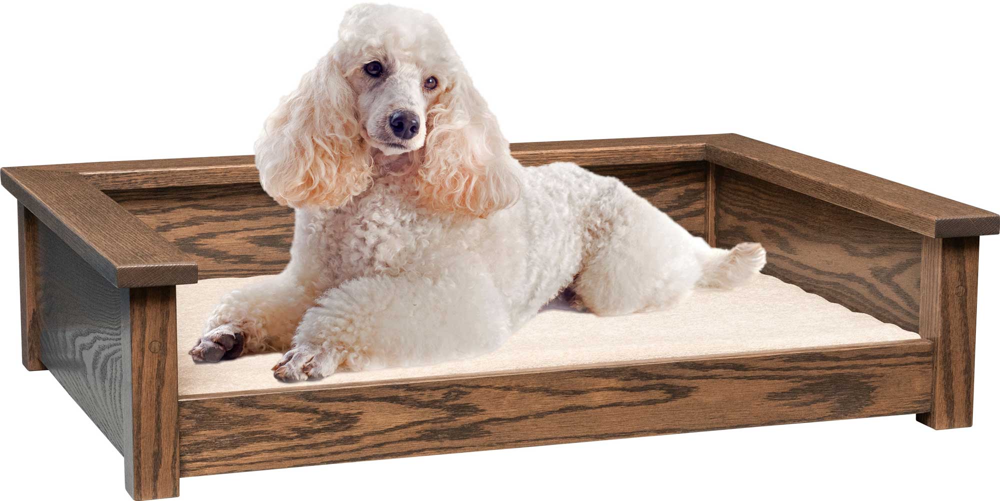A dog bed fancy enough to match your existing furniture and so comfy, your dog will love it. That’s the Parkin Medium Pet Lounge. Amish artisans build it from solid oak. And they give it a medium finish. So the bed will look great in your home. Also, we line the bed with a quality pad to keep your pet comfortable. The cover is removable. This makes it easy to machine wash. What’s more, the lounge is just under 3 feet wide and 2 feet deep. So it’s perfect for medium-sized dogs.