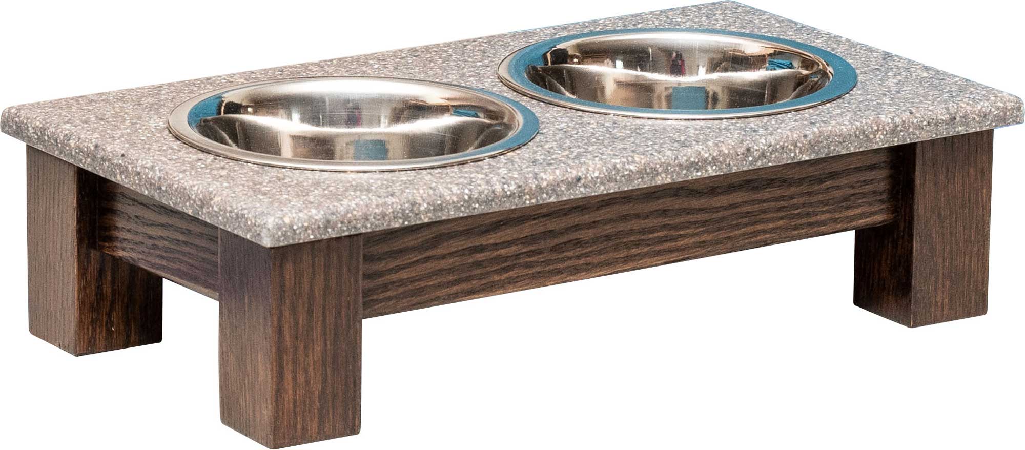The Parkin Small Bowl Diner gives your small dog easy access to food and water – in style. The two metal bowls fit into a solid surface top for easy cleaning. Also, the base is solid oak with a medium finish. So the diner fits great just about everywhere in your home. What’s more, the diner is 3 ½ inches high. Make it the right height for your small dog(s).