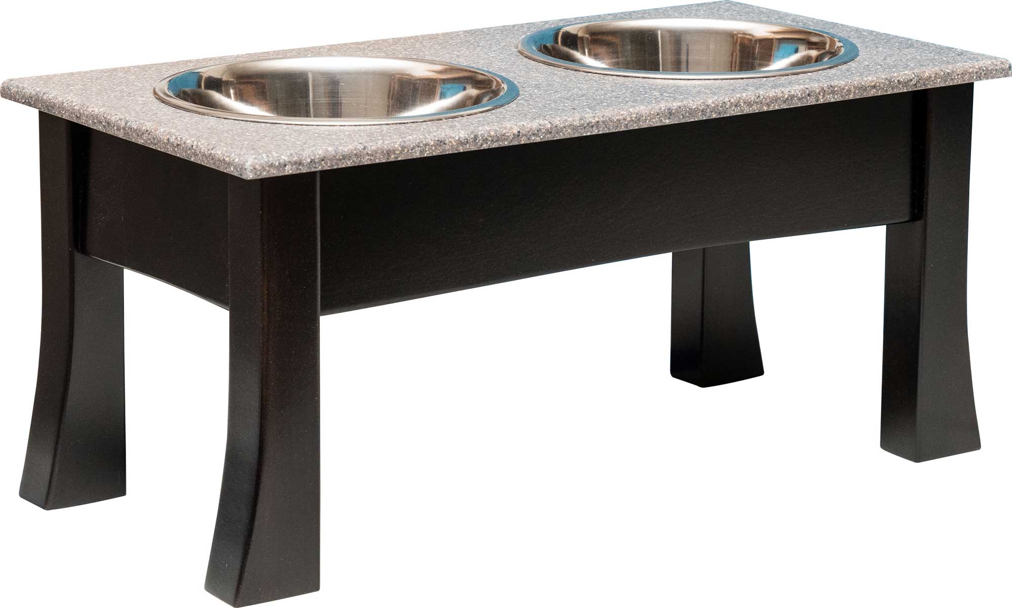 Amish-built from brown maple (with a dark finish), the Springville Large Bowl Diner has a strong visual appeal. Also, it’s 10 inches high. So the diner is the right height for any medium-size to large dog. The two metal bowls fit into a solid surface top. This makes the diner easy to clean and great-looking, too.