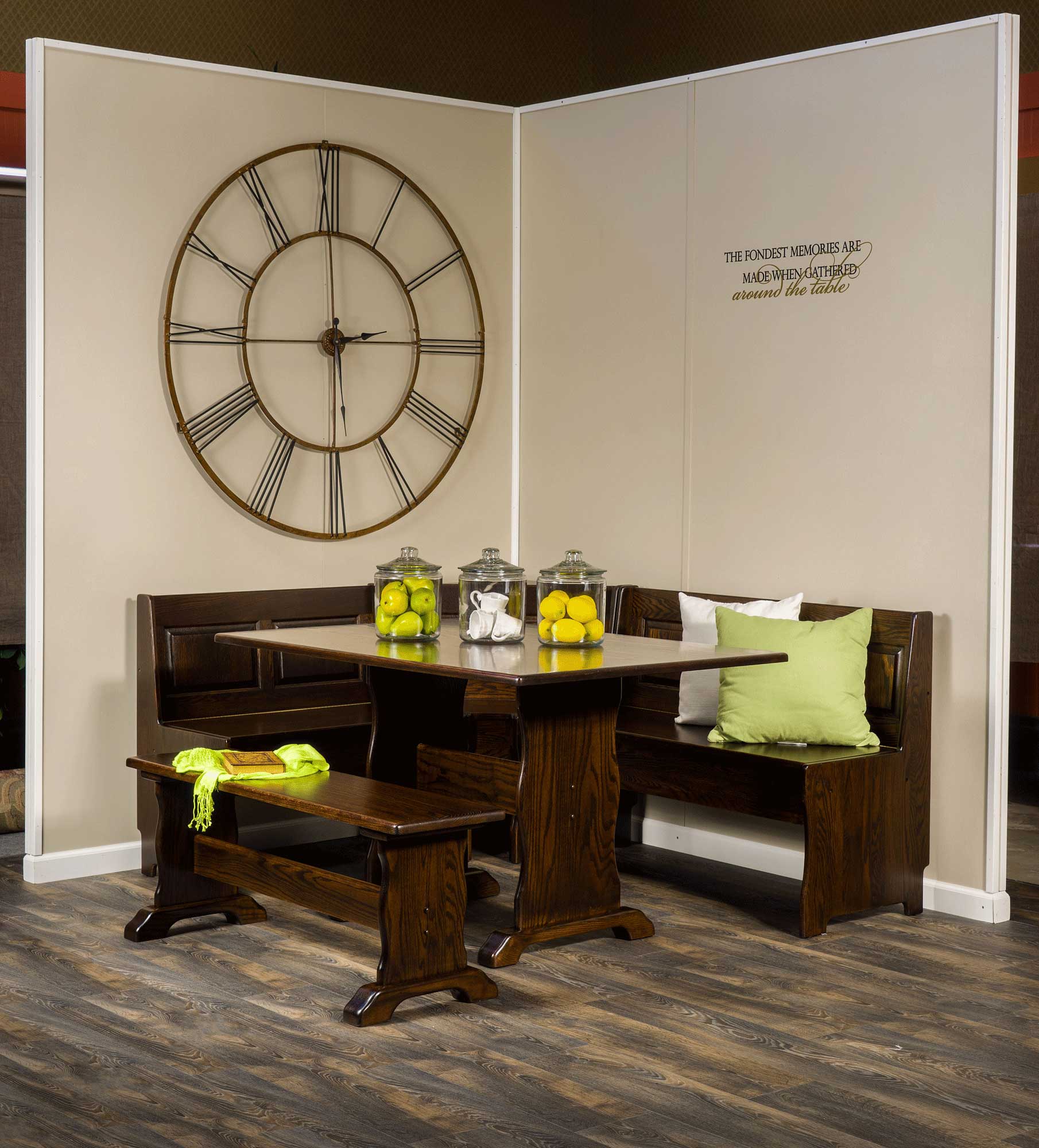 Finally, the most important feature of this table set is its origins. This table set is carefully constructed by Amish men located in Northern Indiana. These Amish men spend years working to perfect their craft and this nook set is just one example of their diligent work. The Amish culture values hard work and simplicity. This nook set exemplifies those two values to the fullest. Bring a portion of the Amish culture to your dining room today.