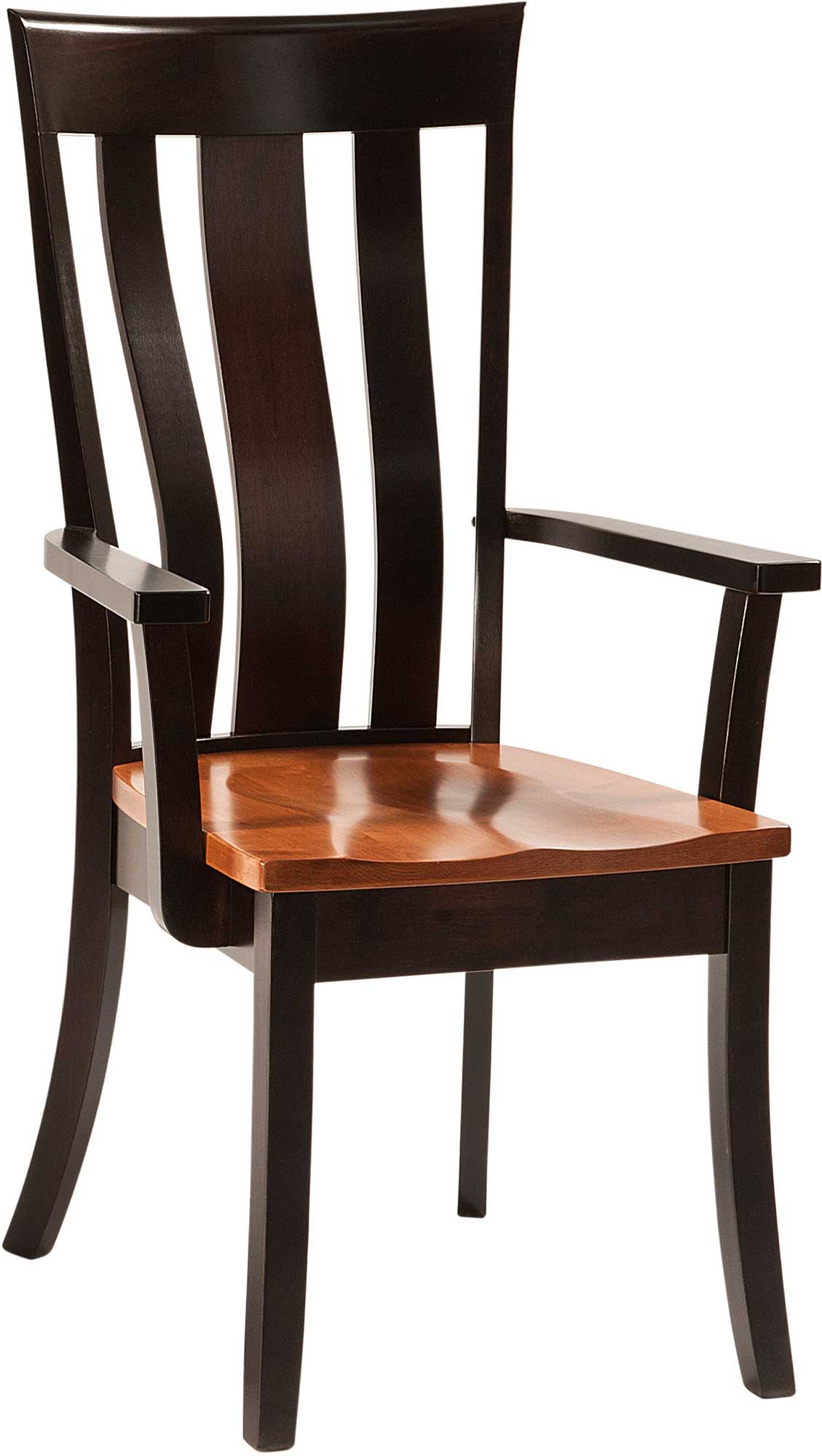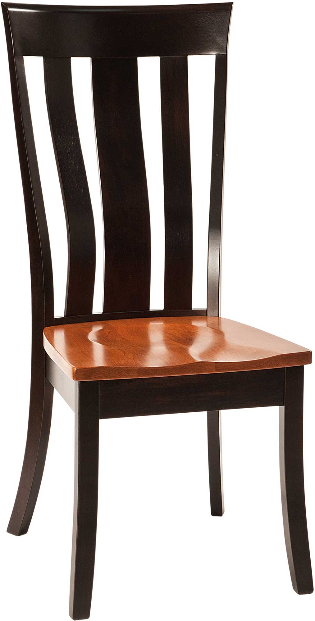 The Yorktown Kitchen Chair will enhance your dining room or kitchen with its unique two-tone look and hardwood construction. Additionally, the three slats in the back are curved for lumbar support. Also, notice the tapered legs, specifically designed for stability and longevity. This chair is available in regional Brown Maple wood and is shown with a two-tone finish. The Yorktown Chair is also available as an armchair.
